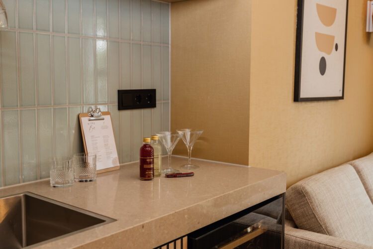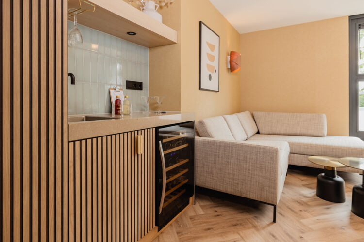 Ihre Suite verfügt über eine elegante Sitzeck, ein großzügiges Boxspringbett mit harten und weichen Kissen, ein geräumiges Badezimmer mit Regendusche, Doppelwaschbecken und eine separate Toilette. Damit Sie Ihren Aufenthalt optimal genießen können, verfügt die Suite außerdem über eine Nespresso-Maschine, einen Quooker-Zapfhahn mit Teemöglichkeit und eine Weinkühler mit besonderen Weinen und Spirituosen. Natürlich gibt es auch einen Flachbildfernseher, einen Safe und eine Klimaanlage.
