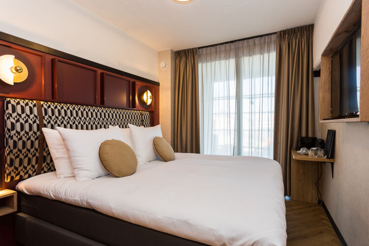 Die Court Lodges (16 m²) befinden sich im Erdgeschoss. Sobald man die Halle zu den Court Lodges betritt, bemerkt man die Ruhe. Sie lassen die belebte Lobby hinter sich und blicken durch eine Glasscheibe in die Bar. Hier spiegelt sich der monumentale Charakter der Timmerfabriek in den Betonbalken und den niedrigen Decken wieder. Ein einzigartiger Weg zu Ihrem Zimmer!