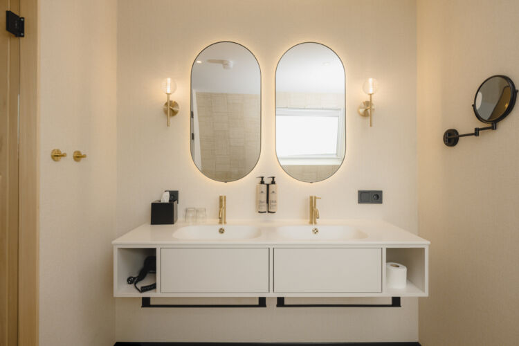 - Doppelwaschtisch mit beleuchtetem Spiegel