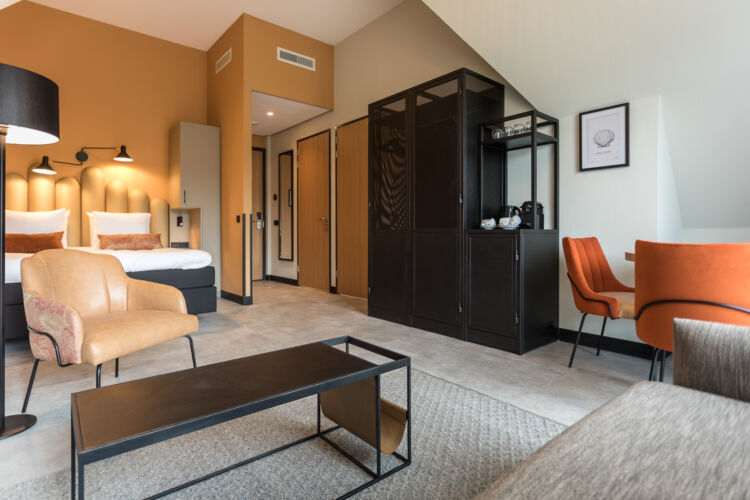 Die Suite bietet Platz für 4 Personen und in beiden Schlafzimmern befinden sich ein Boxspringbett und ein Tresor. Außerdem verfügt die Deluxe Suite über einen Sitzbereich mit einem Sofa, einem Kühlschrank, einem Fernseher, einer Nespressomaschine und einem Wasserkocher. Übernachten Sie bei Hotel Zeeuws Licht, dann bekommen Sie kostenloses Frühstücksbuffet, WiFi und ein Parkplatz sind standardmäßig inbegriffen.