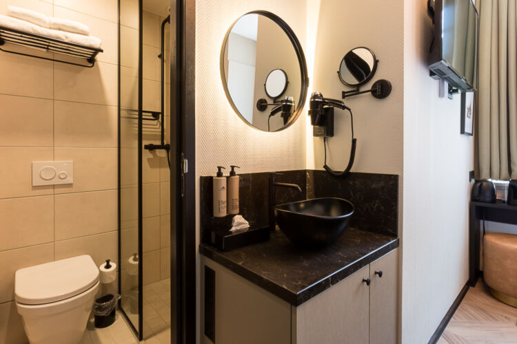 After a day of cultural delights and a cozy dinner in the center, there is nothing better than returning to this stylishly decorated room. The compact City Room (12-16 m2) has a double bed and a small bathroom with shower and toilet. The room also has a television, air conditioning, coffee and tea making facilities, a safe and a refrigerator.