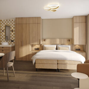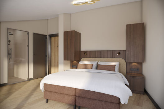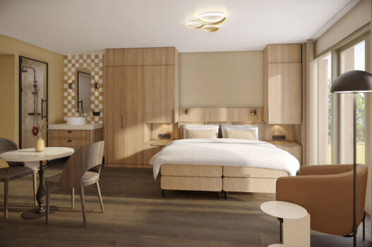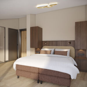 Hotel Riet zal beschikken over 34 tweepersoonskamers, allemaal met uitzicht op de glooiende duinen en met een eigen terras of balkon waar je baadt in de laatste stralen van de ondergaande zon. Laat je in slaap sussen door het ritme van de wind en geniet van een goede nachtrust in onze boxspringbedden. De kamers zijn zo ingericht dat je je snel thuis zult voelen. Zo vind je in elke kamer een zitje, een luxe regendouche en koffie- en theefaciliteiten. Sommige kamers hebben zelfs een privé infraroodsauna of bad. Alles zodat je tot rust komt.